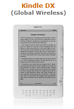 The latest Kindle DX Global wireless reading device has a 9.7 inch display, is just over 1/3 of an inch thick and weighs just 18.9 ounces. This ebook reader can store a maximum of 3,500 books, so you can carry your library of books comfortably at home or abroad in over 100 countries.